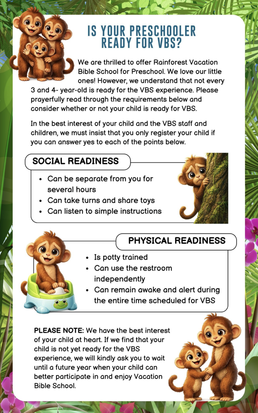 Take a peek at these guidelines when deciding if your little is ready for this big week! Please note, we have a free nursery available for children of volunteers who are not yet ready to attend!
